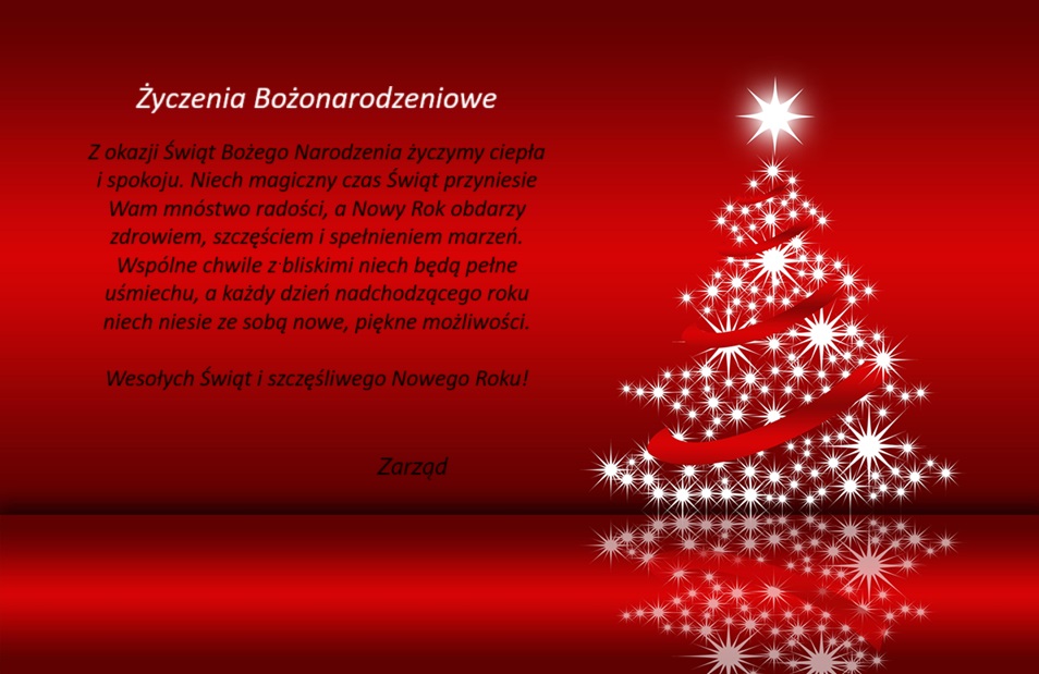 Z okazji nadchodzących Świąt Bożego Narodzenia składamy Wam najserdeczniejsze życzenia- aby to był niezapomniany czas spędzony wśród najbliższych w zdrowiu i spokoju życzy zarząd koła!